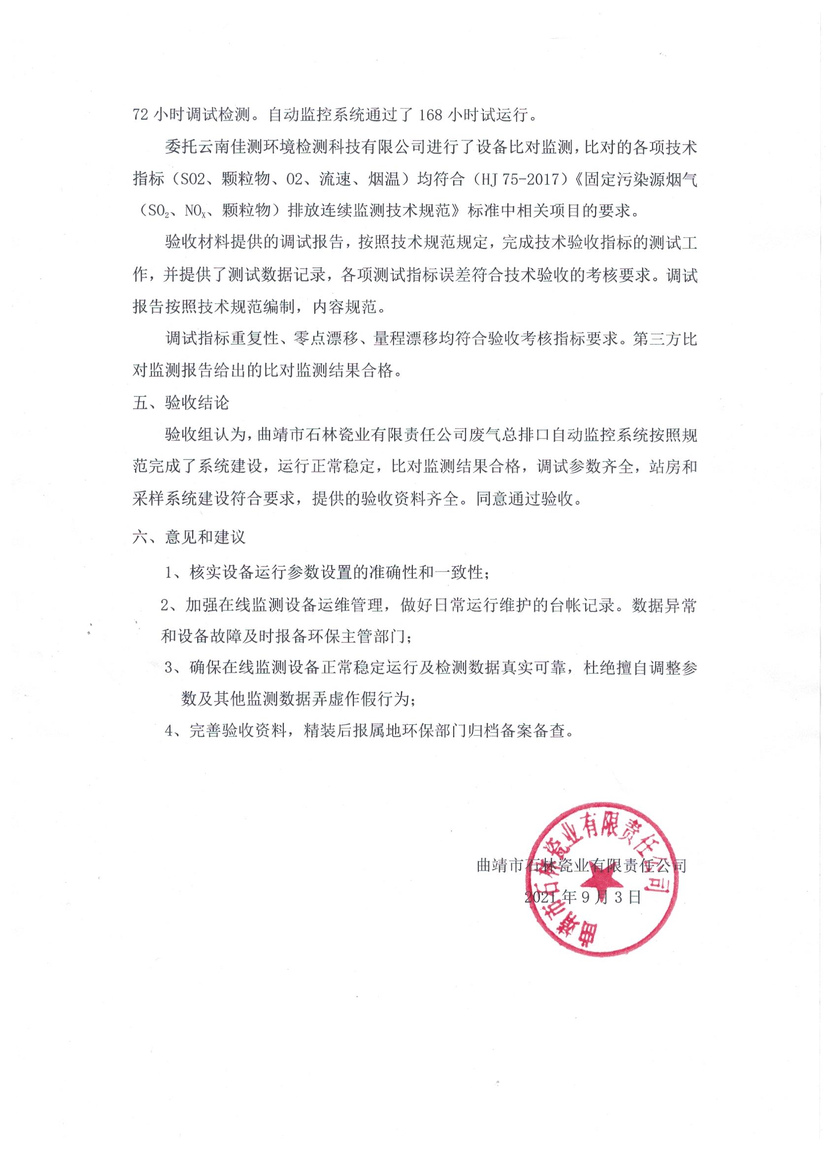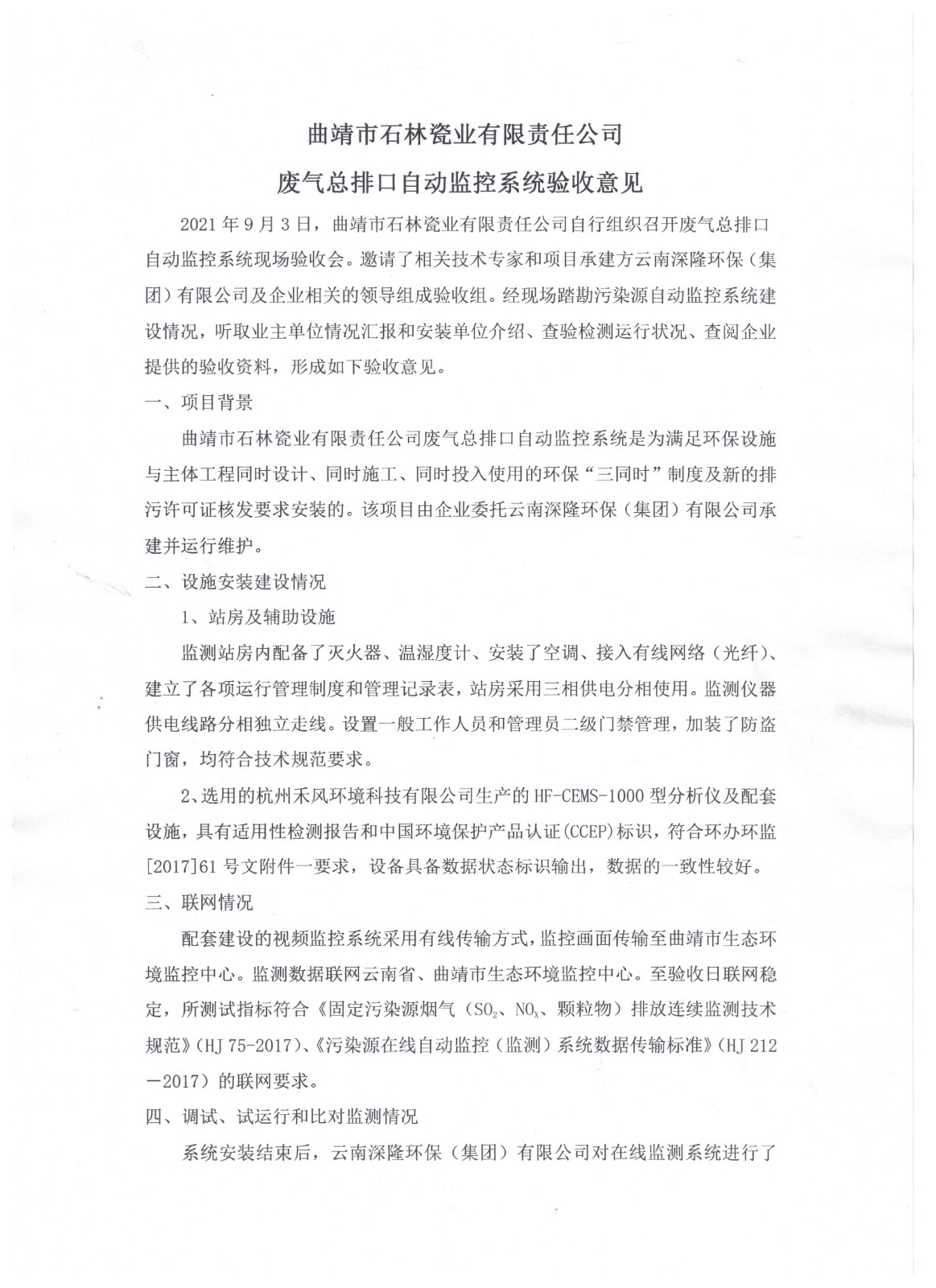 曲靖市石林瓷業(yè)有限責(zé)任公司廢氣總排口自動監(jiān)控系統(tǒng)驗(yàn)收報�?定稿).pdf