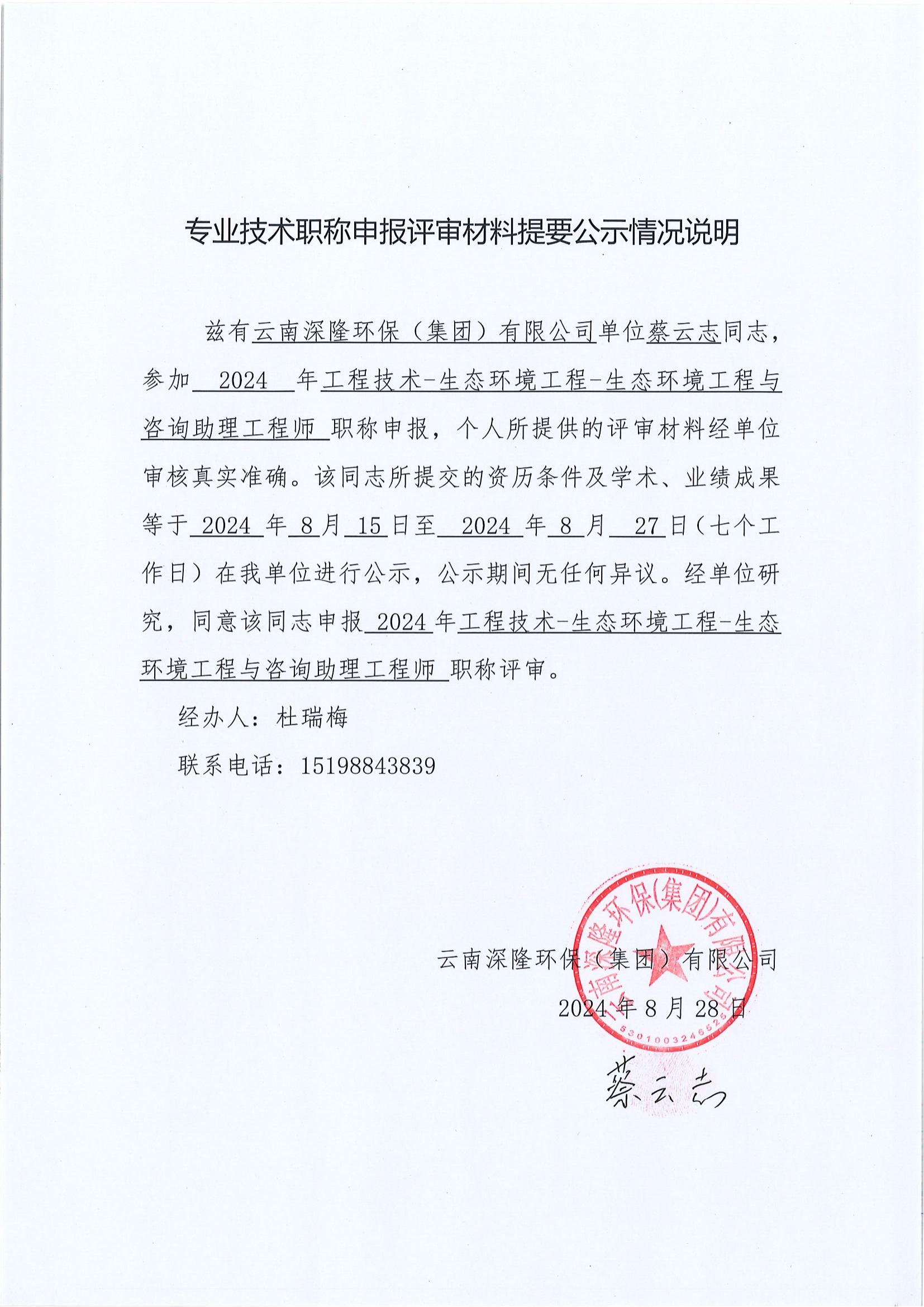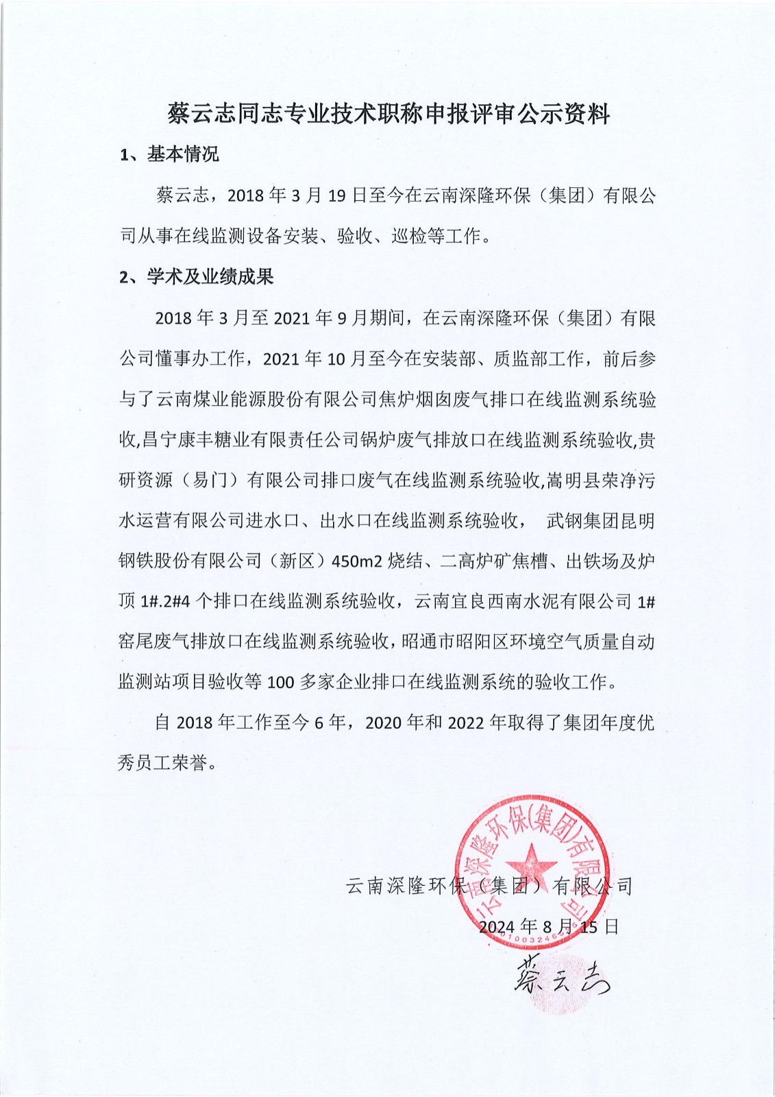 關(guān)于蔡云志同志申報助理工程師專業(yè)技術(shù)職稱的公示