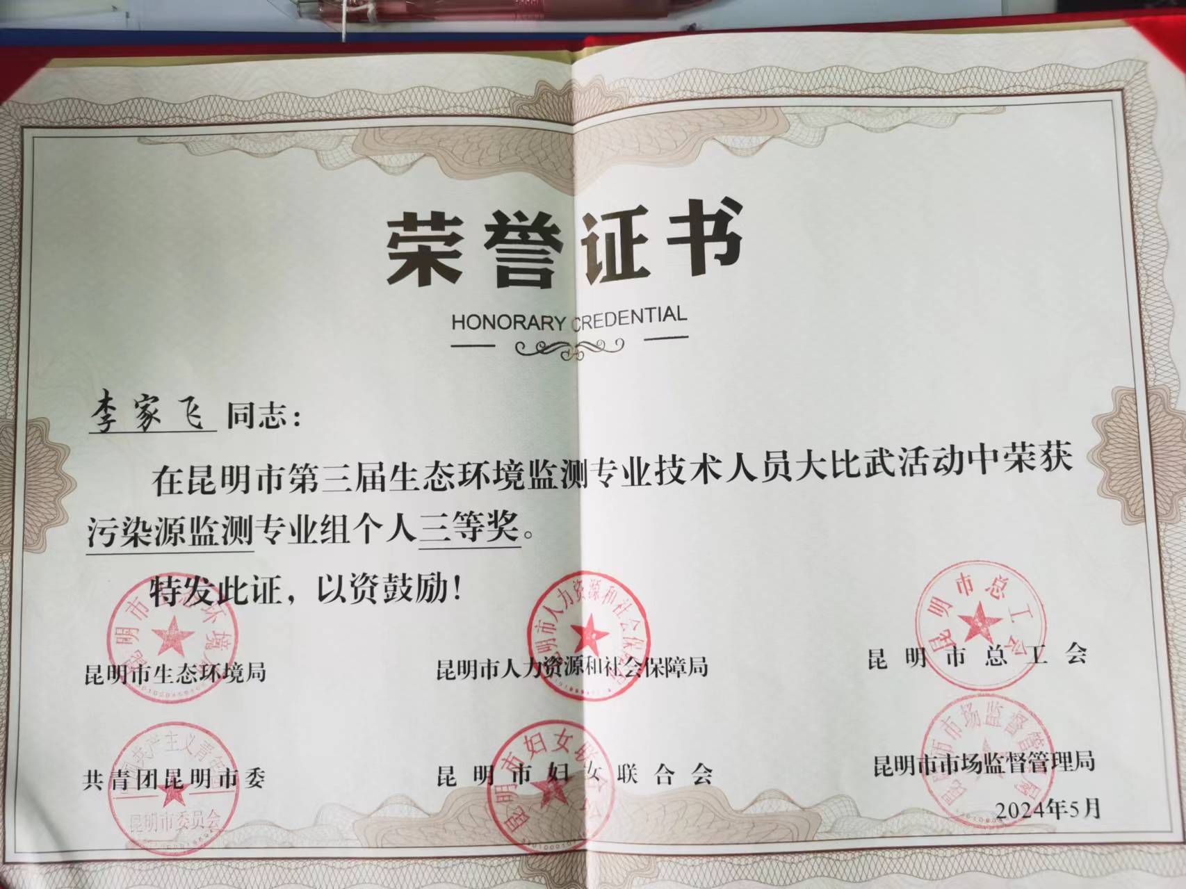 近日,由昆明市生態(tài)環(huán)境局、人力資源社會保障局、總工會、共青團、婦聯(lián)和市場監(jiān)督管理局聯(lián)合舉辦的“昆明市第三屆生態(tài)環(huán)境監(jiān)測專業(yè)技術(shù)人員大比武”活動圓滿落下帷幕。此次大比武旨在深入貫徹黨的二十大精神,加強生態(tài)環(huán)境保護隊伍建設(shè),提升監(jiān)測技術(shù)人員能力水平。大比武活動以“監(jiān)測先行、監(jiān)測靈敏、監(jiān)測準確”為導向,分為實驗室分析、污染源監(jiān)測、應(yīng)急監(jiān)測、環(huán)境空氣質(zhì)量自動監(jiān)測、綜合評價五個專業(yè)組。經(jīng)過激烈的角逐。云南塵清環(huán)境監(jiān)測有限公司的付忠文,憑借扎實的專業(yè)知識和精湛的操作技能,榮獲社會機構(gòu)隊污染源監(jiān)測專業(yè)組個人一等獎,展現(xiàn)了公司技術(shù)人員的高水平實力。同時,公司同事李家飛,榮獲了社會機構(gòu)隊污染源監(jiān)測專業(yè)組個人三等獎,樊志龍在社會機構(gòu)隊實驗室分析專業(yè)組中脫穎而出,榮獲個人一等獎,為公司贏得了榮譽。