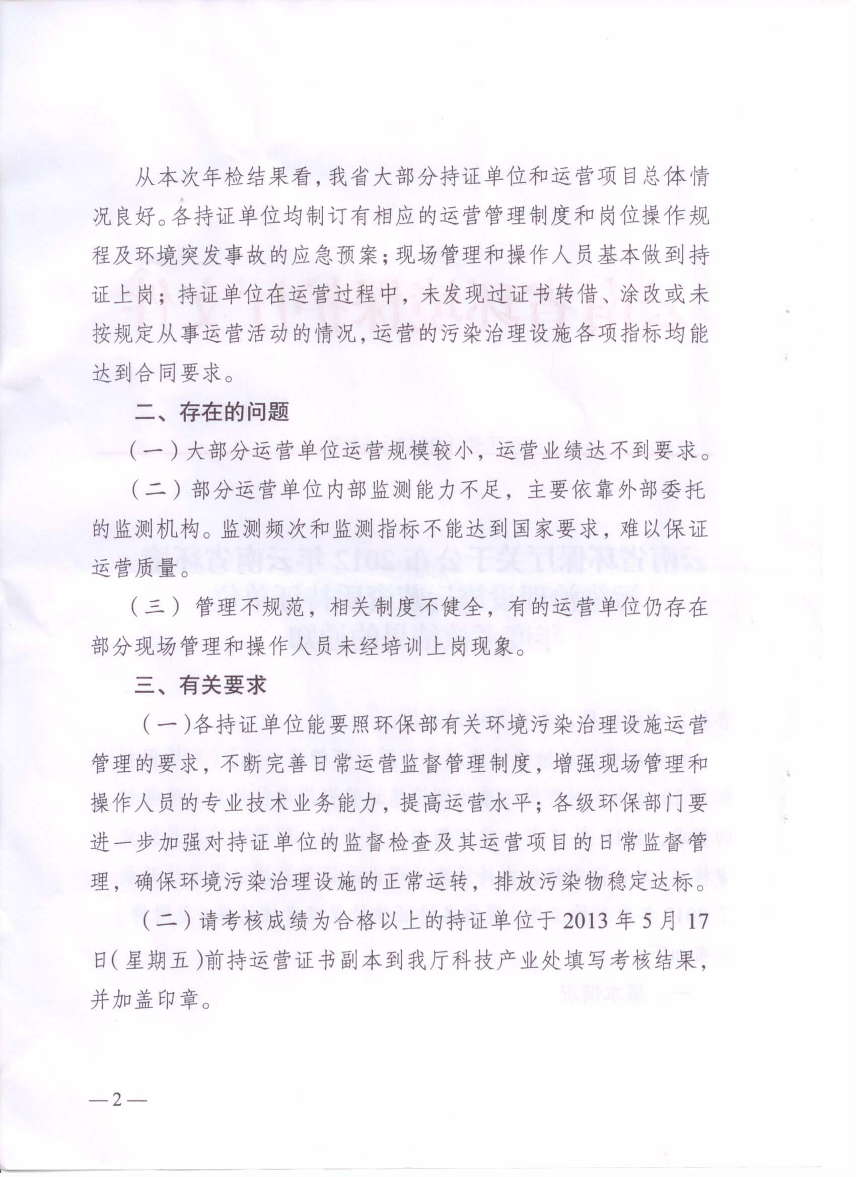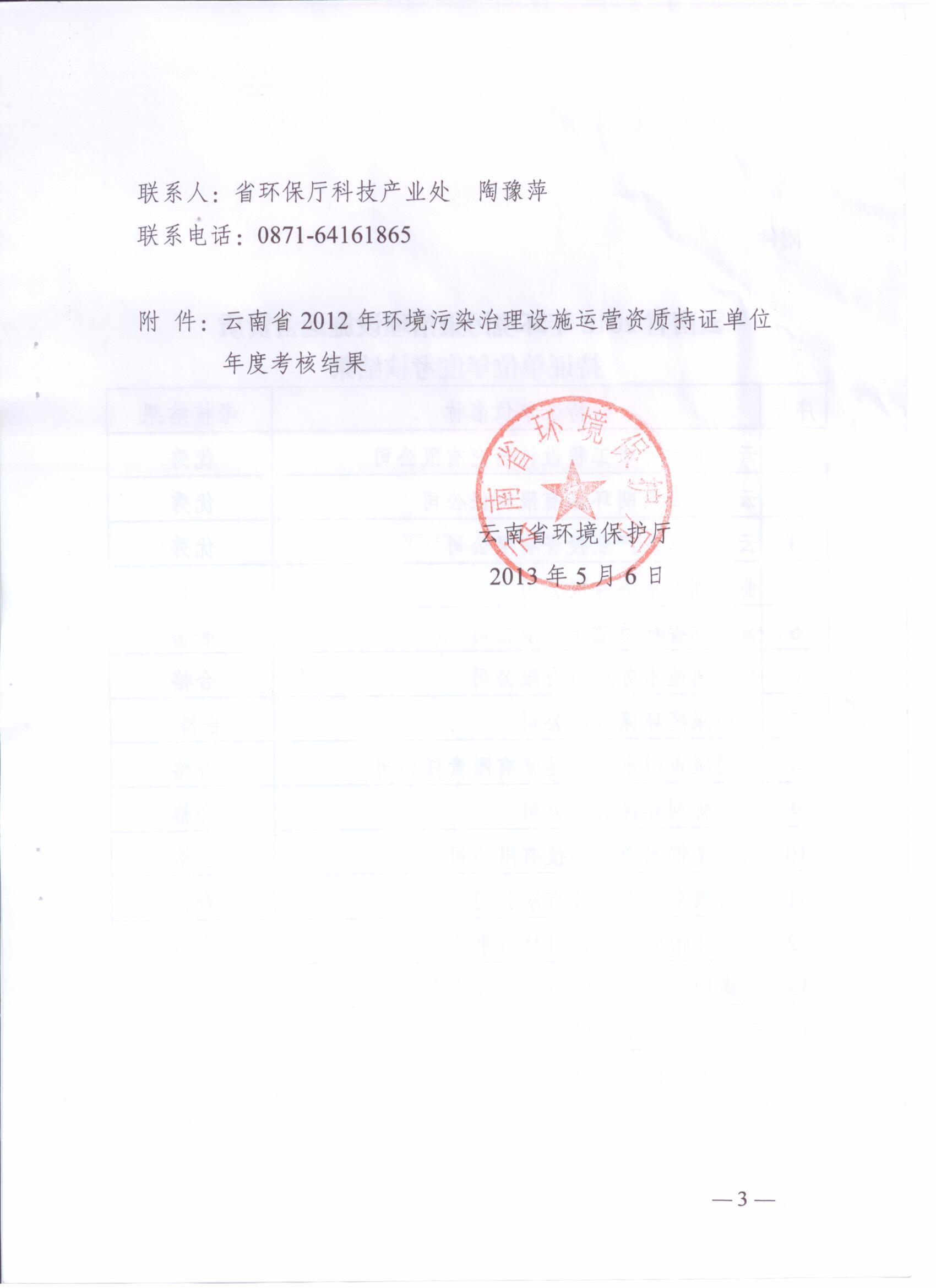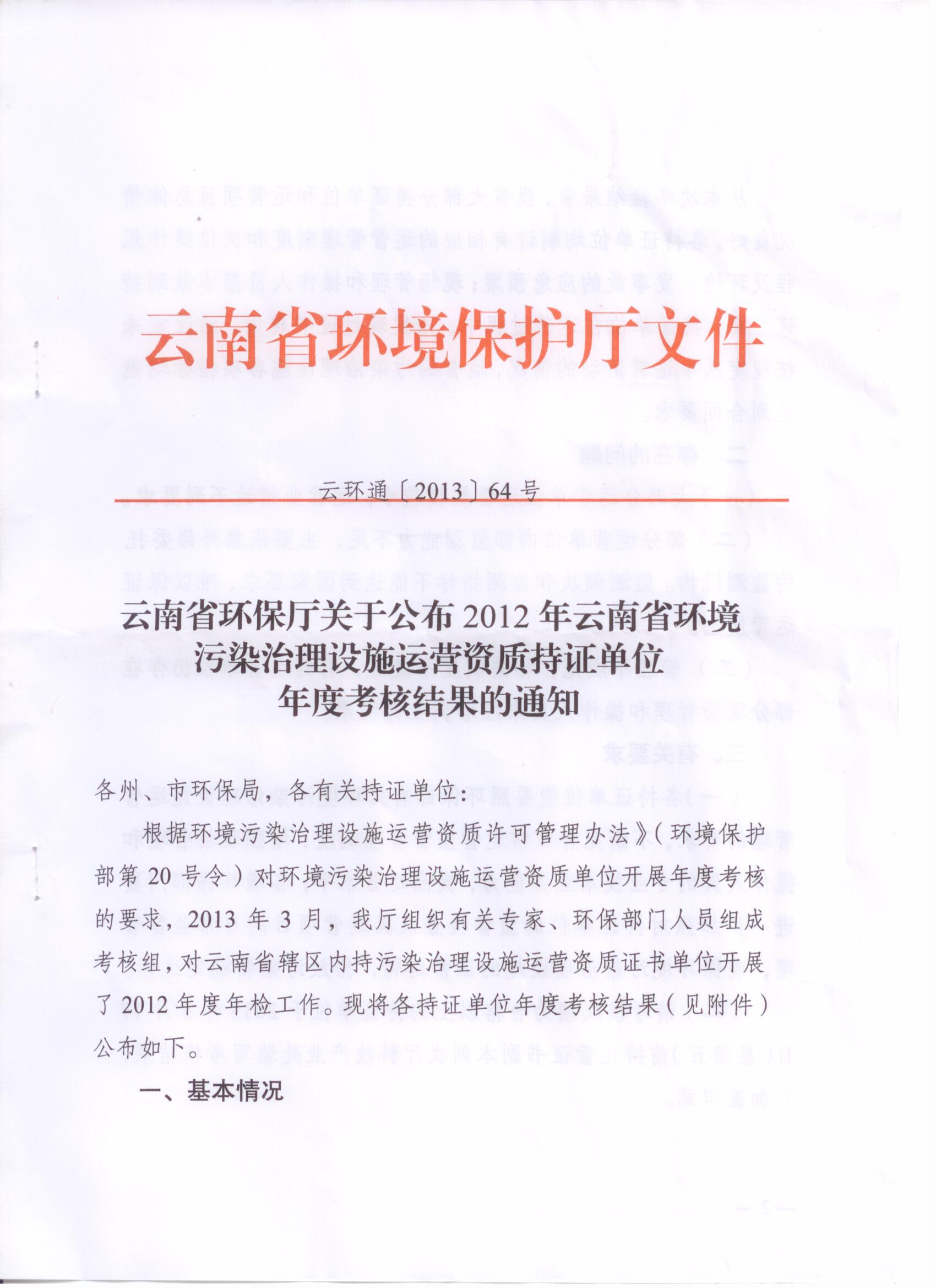 云環(huán)通【2013】64號——2012年度運營資質(zhì)持證單位考核結(jié)果